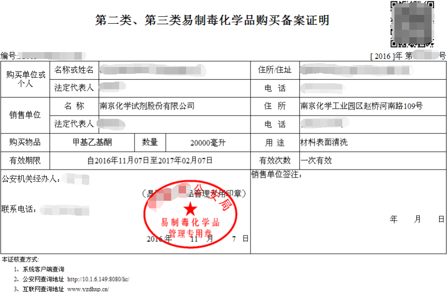 易制毒化學(xué)品購(gòu)買(mǎi)備案證明樣圖