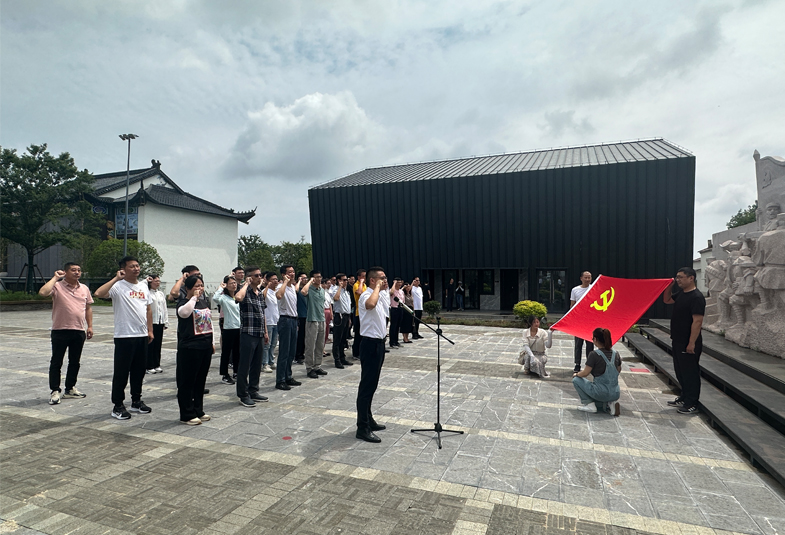 踏上青石板,重走烽火路,黨員、中高管仿佛置身當(dāng)年烽火硝煙的戰(zhàn)場(chǎng),聆聽(tīng)著陳毅、栗裕、江渭清、王必成、葉飛、鐘國(guó)楚等將士的光輝事跡,一張張黑白照片、一段段文獻(xiàn)資料,一幅幅場(chǎng)影都“活”了起來(lái),一個(gè)個(gè)英雄人物英勇的故事讓大家心潮澎湃,革命先烈們舍生取義的品格、艱苦卓絕的斗爭(zhēng)、堅(jiān)韌不拔的毅力讓大家深深感動(dòng)。在初心廣場(chǎng)上,黨員們面向革命烈士雕像,共同重溫了入黨誓詞。