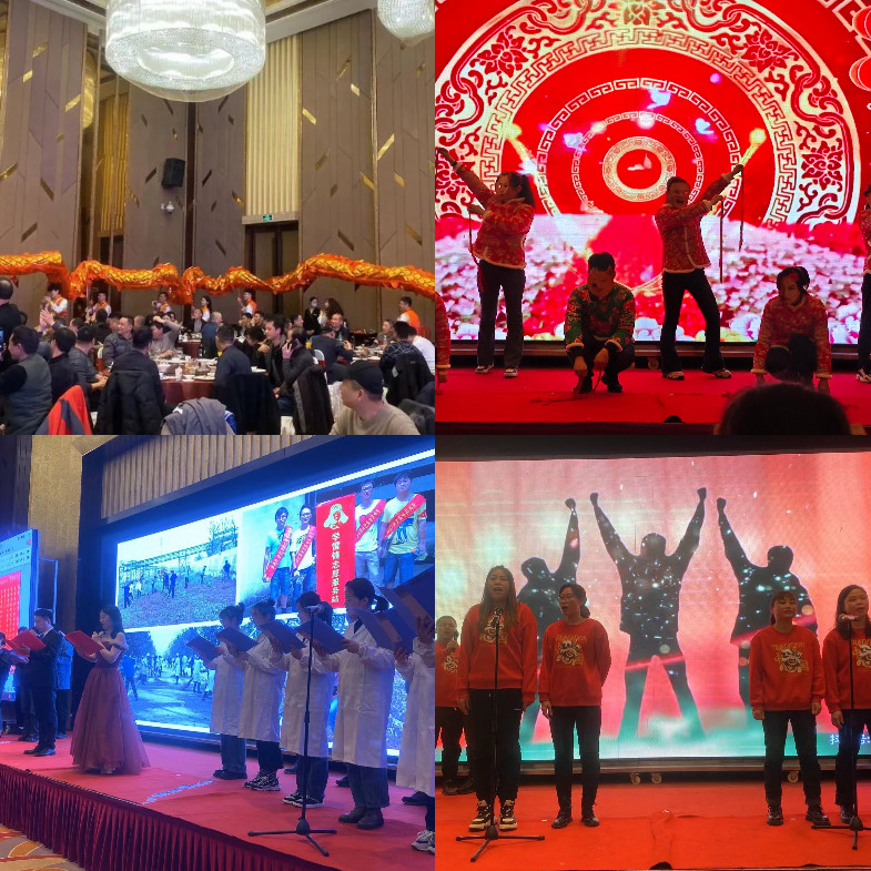各部門、分廠獻(xiàn)上了自編自導(dǎo)自演的文藝節(jié)目。首先登場(chǎng)的是傳統(tǒng)民間藝術(shù)《舞龍》,伴隨著“長(zhǎng)龍”的飛舞穿梭,宴會(huì)氣氛頓顯活躍,員工們迅速?gòu)木o張的工作狀態(tài)中釋放出來(lái)。緊接著,串燒(科目三+開(kāi)門紅)、合唱《如愿》、表演《敬業(yè)陣線聯(lián)盟》、舞蹈《茉莉花》、合唱《真心英雄》……一曲曲動(dòng)人的旋律,一部部深情的演繹,一張張?zhí)兆淼男δ槪惆l(fā)著對(duì)未來(lái)生活的憧憬與希望。由“藍(lán)精靈”讀書會(huì)編導(dǎo),24位節(jié)氣姑娘、小伙們聯(lián)合呈現(xiàn)的詩(shī)朗誦《南試情》,用“濃情歲月”、“激情寫照”、“豪情展望”三個(gè)篇章,深情回顧了南京試劑建廠66年,一代代南試人艱苦創(chuàng)業(yè),拼搏進(jìn)取的艱辛歷程,展望了企業(yè)聚焦精細(xì)化學(xué)品,把試劑品種做多、把藥用輔料做專、把定制產(chǎn)品做優(yōu)、把企業(yè)管理做精,為顧客提供優(yōu)質(zhì)產(chǎn)品和服務(wù)的美好藍(lán)圖。倡導(dǎo)新時(shí)期南試人記住來(lái)時(shí)路,看清前方路,走好當(dāng)下路,銘懷初心,牢記使命,自我賦能,勇敢擔(dān)當(dāng),為企業(yè)發(fā)展貢獻(xiàn)力量。