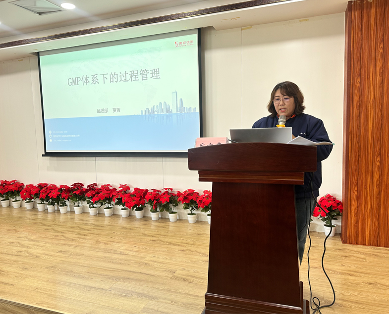 會上,質(zhì)量總監(jiān)回顧了2023年的質(zhì)量工作。在堅持質(zhì)量管理體系有效運行的基礎之上,編制實施了藥用輔料質(zhì)量管理體系,進一步強化過程控制、現(xiàn)場QA檢查,強化標簽、COA、不合格品管理,質(zhì)量管理不斷鞏固提升。同時,公司還實施了包裝、有機、硝酸、乙酸鈉、鐵銨鹽等多處車間廠房環(huán)境改造,引進自動罐裝機、真空上料機、噴霧干燥機、連續(xù)精餾塔、檢測中心ICP等設備和系統(tǒng),完成乙酸鈷、冰醋酸、注射乙醇、變性乙醇等工藝改良,提升自動化、信息化、數(shù)字化水平,為高純試劑及高端藥輔產(chǎn)品生產(chǎn)提供保障。質(zhì)量顧問就如何全面、系統(tǒng)貫徹執(zhí)行GMP體系,從人、機、料、法、環(huán)等方面做了分享介紹。