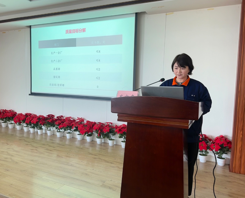 總經(jīng)理在講話中充分肯定了2023年質(zhì)量和創(chuàng)新工作做出的努力和取得的成績,從四個方面對來年質(zhì)量、創(chuàng)新工作提了要求。一是強化團隊建設,質(zhì)量和創(chuàng)新團隊要統(tǒng)一認識,能挑“硬擔子”、敢啃“硬骨頭”,勇于挑戰(zhàn),攻堅克難,推動企業(yè)追求卓越,守正創(chuàng)新。二是強化制度執(zhí)行,管理部門要敢于較真,嚴格監(jiān)督考核,以GMP體系的實施為契機,進一步夯實基礎管理。三是保證資源投入,加快檢測、研發(fā)實驗室改造和設備設施提檔升級。四是各條線、各部門分廠,要以市場為導向,服務關口前移,管理重心下沉,精心、用心、細心、專心,竭誠為顧客提供優(yōu)質(zhì)的產(chǎn)品和服務。