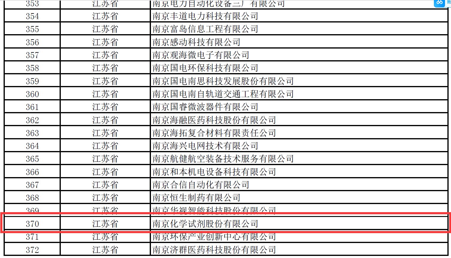 近日,江蘇省工業(yè)和信息化廳發(fā)布了《關(guān)于江蘇省第六批專精特新“小巨人”企業(yè)和第三批專精特新“小巨人”復(fù)核通過企業(yè)名單的公示》,南京試劑已通過審核,入選第六批國家級專精特新“小巨人”企業(yè)。